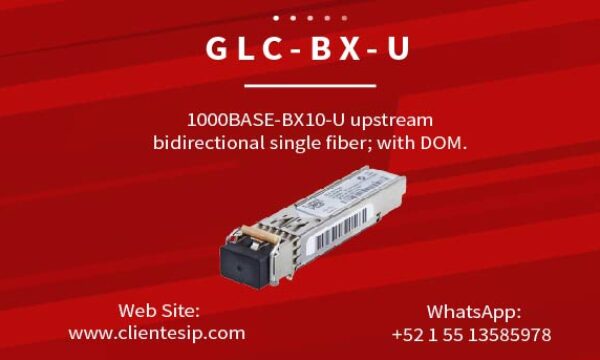 GLC-BX-U-I 1000BASE-BX10 SFP module, Upstream, Industrial Temp Descripción del módulo Cisco GLC-BX-U-I El GLC-BX-D-I es un módulo transceptor SFP (Small Form-Factor Pluggable) bidireccional diseñado para transmisión de datos en redes Gigabit Ethernet