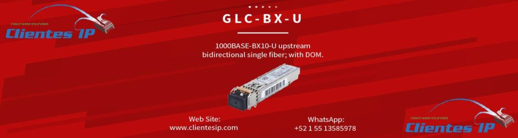 GLC-BX-U-I 1000BASE-BX10 SFP module, Upstream, Industrial Temp Descripción del módulo Cisco GLC-BX-U-I El GLC-BX-D-I es un módulo transceptor SFP (Small Form-Factor Pluggable) bidireccional diseñado para transmisión de datos en redes Gigabit Ethernet