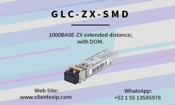 GLC-SX-MMD 1000BASE-SX SFP transceiver module, MMF, 850nm, DOM. El GLC-SX-MMD es un módulo SFP Cisco 1000BASE-SX diseñado para enlaces Gigabit Ethernet sobre fibra óptica multimodo. Es una solución confiable y ampliamente utilizada