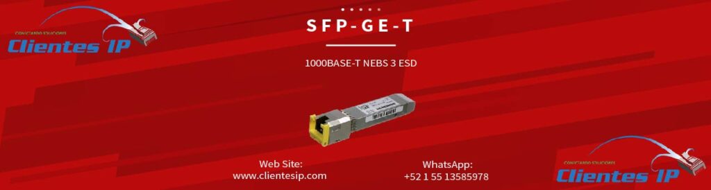 SFP-GE-T SFP-GE-T – Módulo Transceptor Cisco 1000BASE-T RJ-45 Descripción del módulo Cisco SFP-GE-T El SFP-GE-T es un módulo transceptor SFP de cobre diseñado para habilitar conectividad Gigabit Ethernet sobre infraestructura de cableado